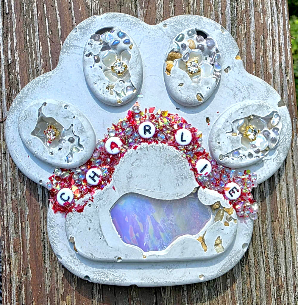 Add your Pet’s name within cement, glass, pebbles, shells etc...No two ever alike! Memorial stones. Cremains may be added as well